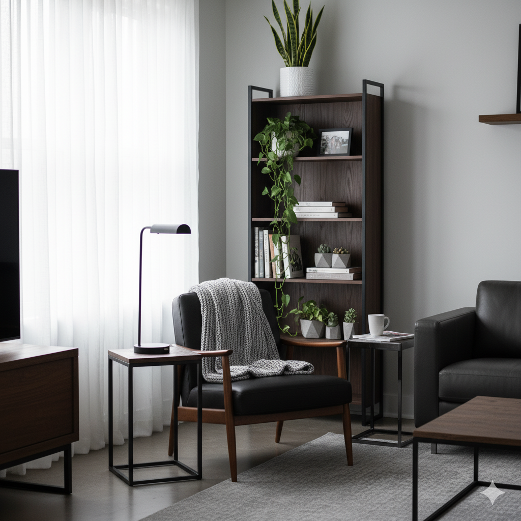 Nothing softens a bachelor pad like greenery. Snake plants, pothos, or succulents add color and life without needing constant care. A touch of nature makes your furniture pop and balances the masculine tones in your decor.