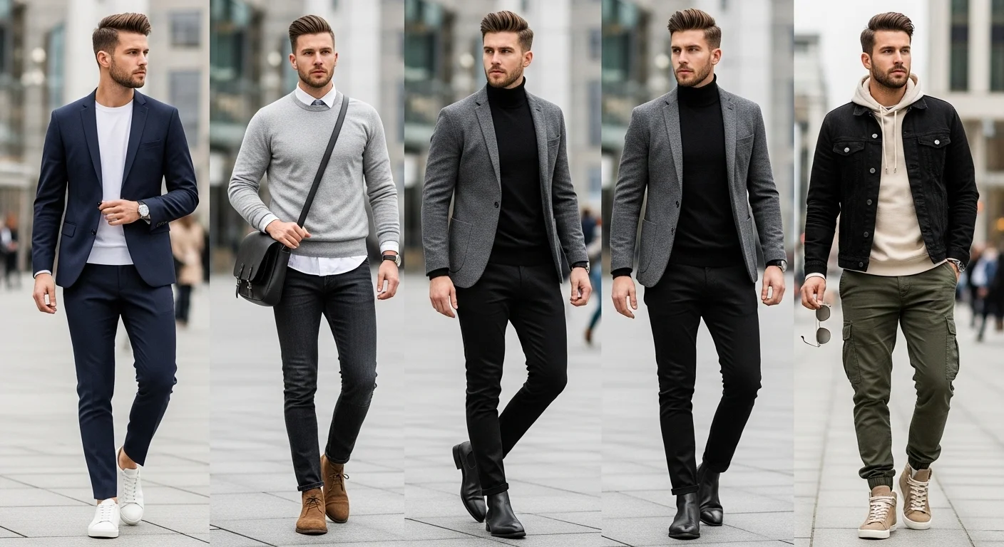 Athletic-inspired looks are no longer limited to the gym. Joggers, polos, and performance fabrics have become staples in men’s weekend style inspiration. Mix comfort and structure with a fitted track jacket and sneakers.